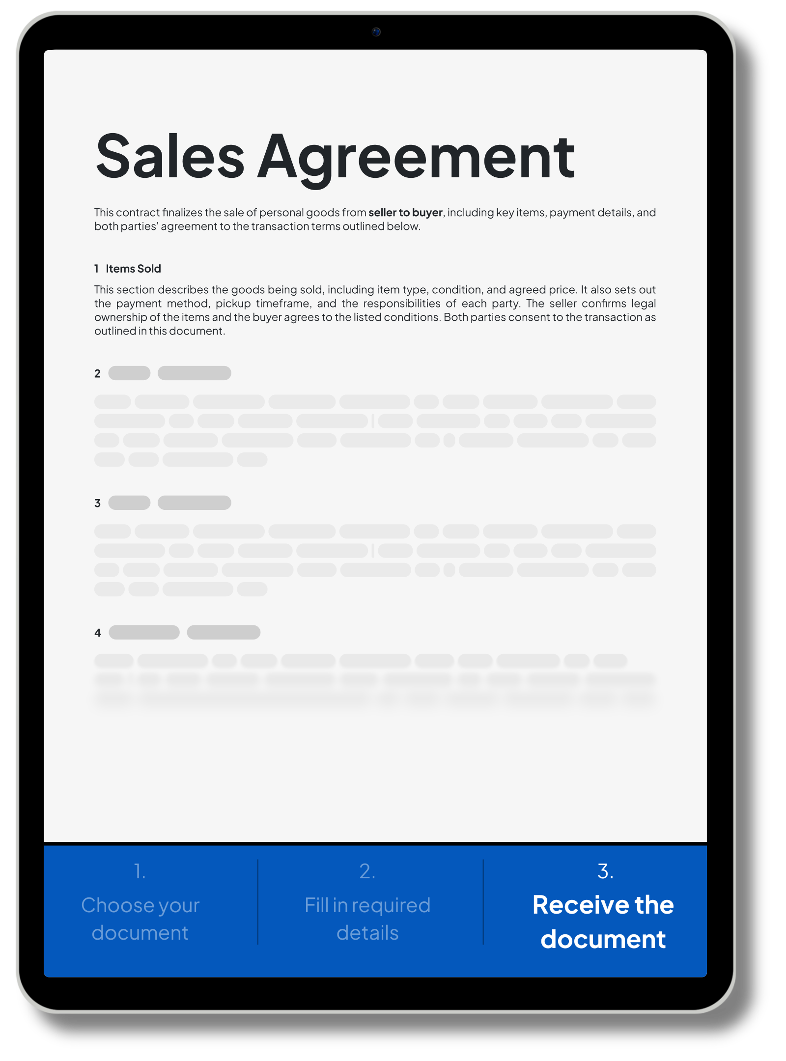 Whether you need a sales agreement contract, a blank sale agreement template, or a fully customized purchase and sale agreement template, NotaryPublic24 helps you create it quickly and accurately – ensuring it meets legal standards for both domestic and international use.